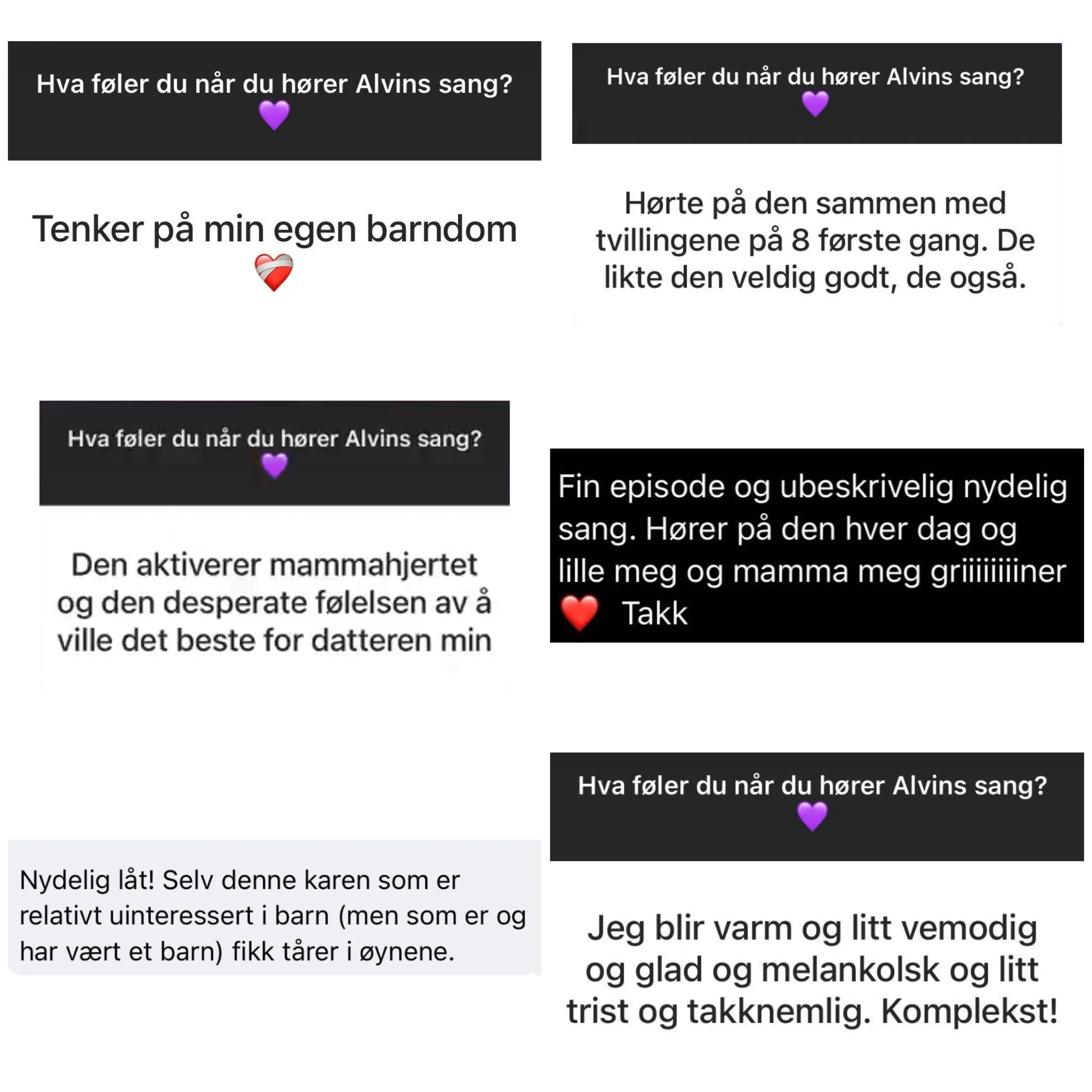 Her er noen av meldingene jeg fikk etter jeg slapp Alvins sang. De bor i meg ennå.